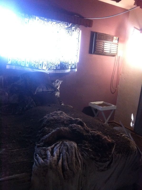 Now the maintenance department was in full on crisis management mode. They carried our bed, my stunning new linen, lamps, butler trays, everything outside. When they had a look up there, it was clear that there was lots more bat poop on top of the ceilings of the other two bedrooms as well. All the ceilings needed to come out and the bat poop needed to be shovelled out. In the other two bedrooms, they put down plastic tarps, before taking the ceilings down. Unfortunately, in our bedroom, the damage to the carpets had already been done. Bat poop came out of our house in bucket loads. Easily 30 years worth of takes your breath away stinky bat poop!
