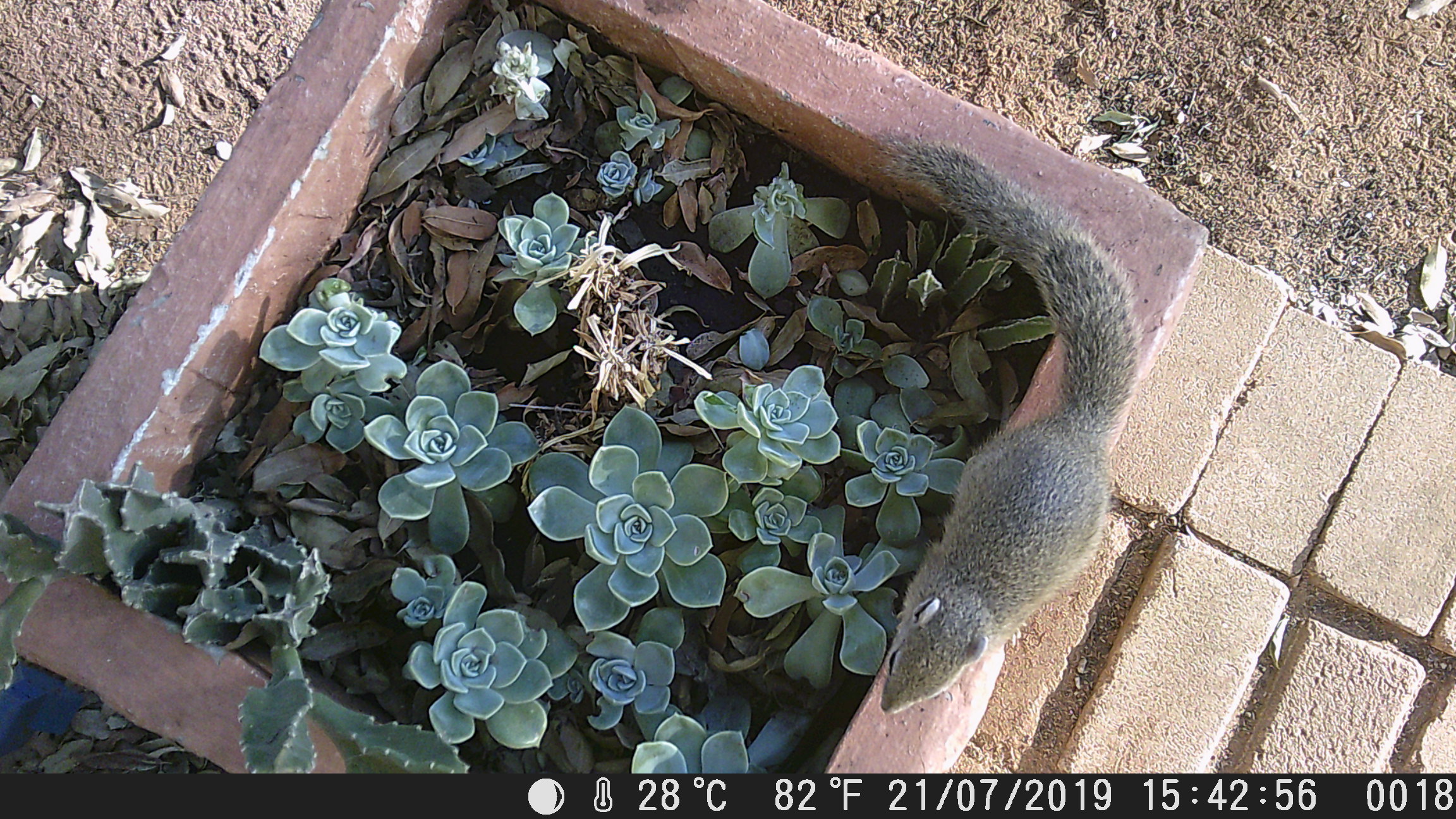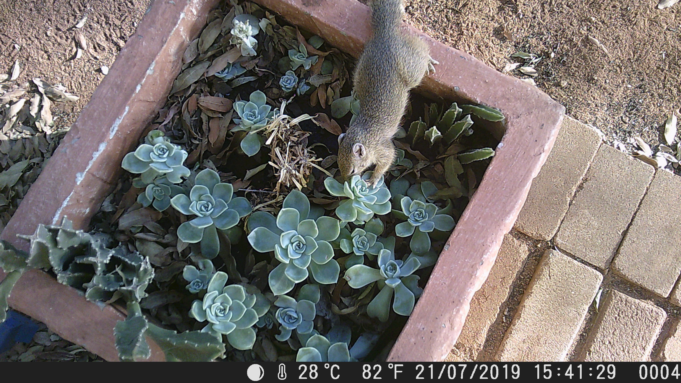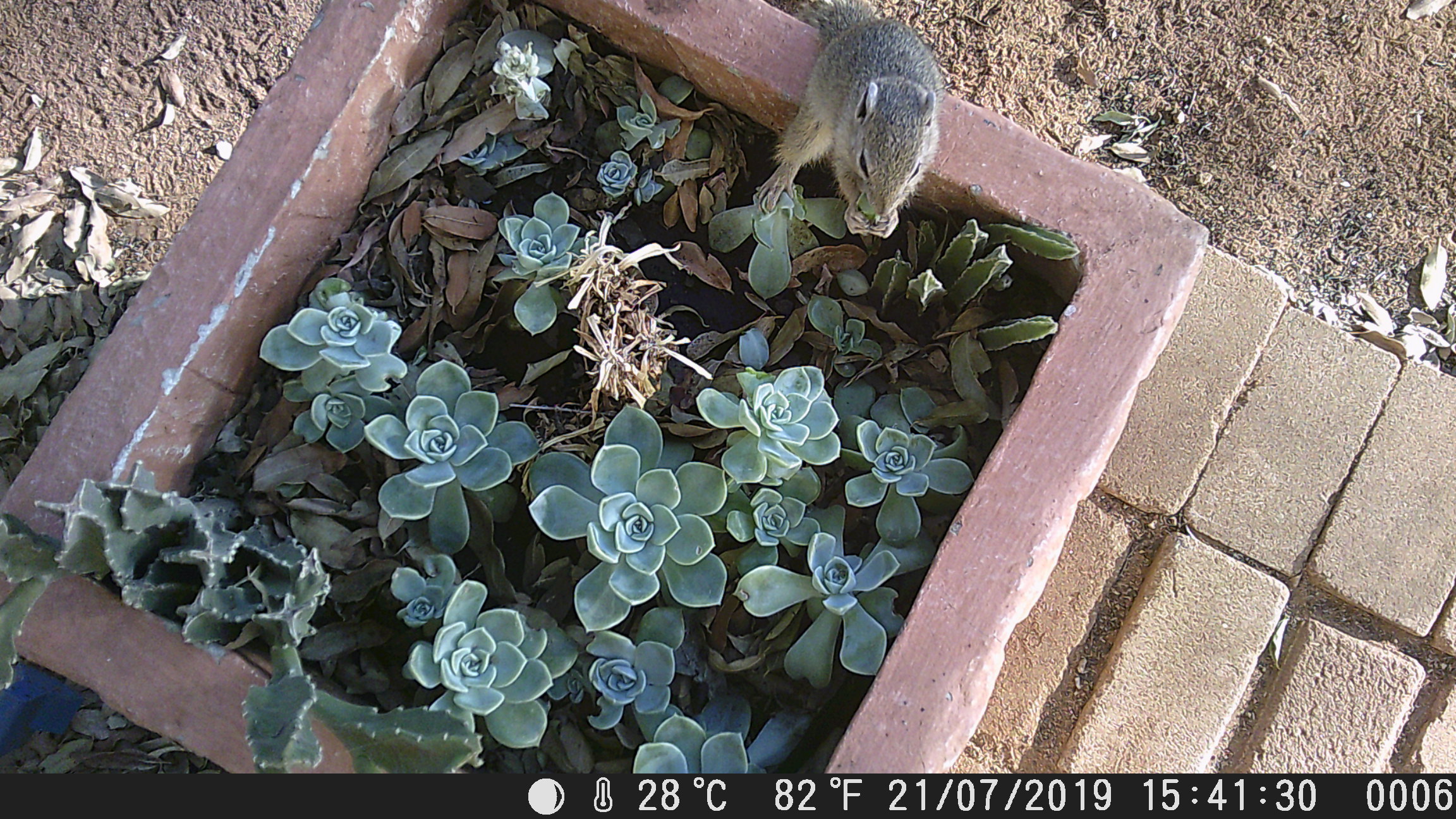 I used my Trail camera and low and behold: check what animal has been eating the desert roses: