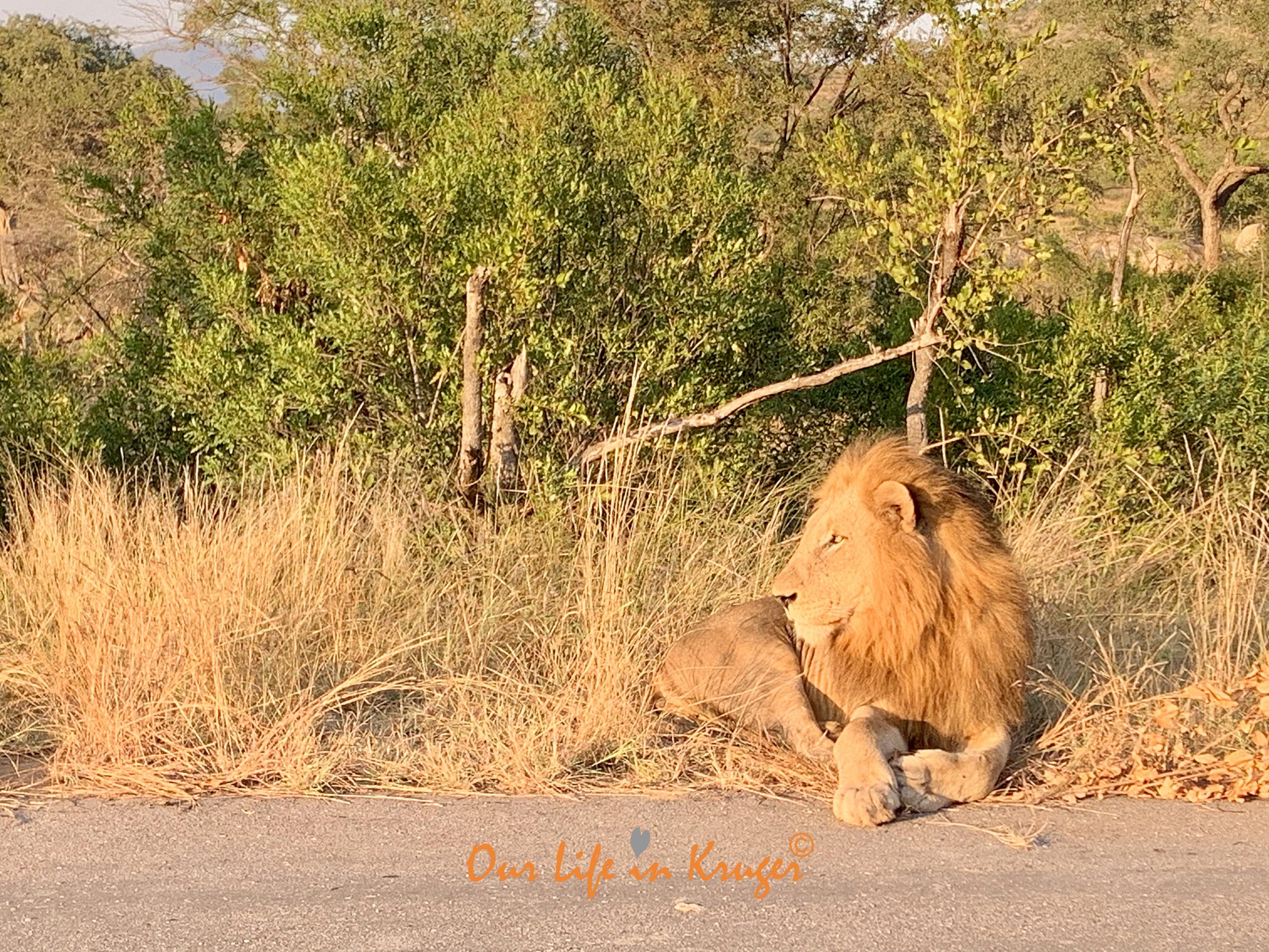 I sat there next to him for a while. I might be struggling emotionally with this lock-down from time to time, but spending quality time with a lion is a great way to lift the spirits!! It reminds me of how lucky and privileged we are to live here. And of how thankful I am that I am allowed to do my washing in camp. Since we are not allowed to drive around just for the fun of it. Hugs, being social and having people visit will happen again. But having Kruger all to myself is a once in a lifetime experience!!