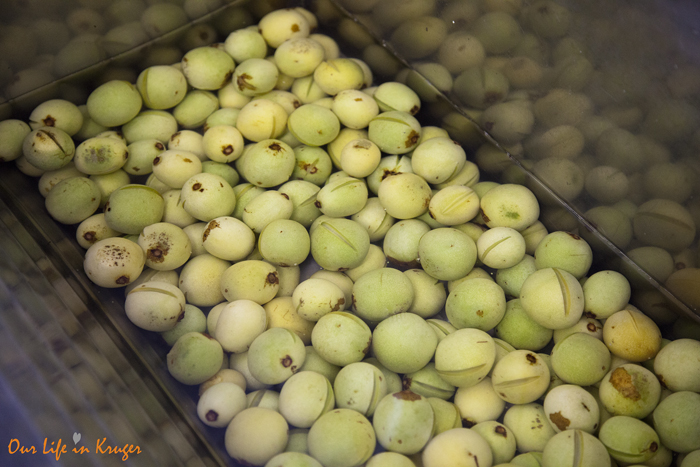 Did you know that there are male and female Marula trees? Only the female trees carry fruit. According to Marula.org.za, a single Marula tree can carry up to 500 kilograms of fruit! Our two female trees are definitely producing a lot! I will be making jelly till the cows come home! 😉 That is if the elephants don’t get to it because elephants looooove Marula fruit!