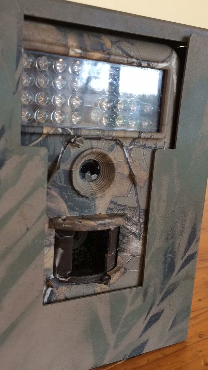 But no! The new box that was put up also got munched! This one even came in a metal container! And it wasn’t even mine! An apology to Paul and Susan Eslick is in order! So I was wondering… Are there teething problems in your clan? Do you just need a good chew toy? Or do us two-leggeds smell so vile that any trace scent of us needs to be annihilated? Please help me try and understand, because I really would like to continue watching the nightly goings on at the waterhole with one of those boxes. (A new one, obviously…)