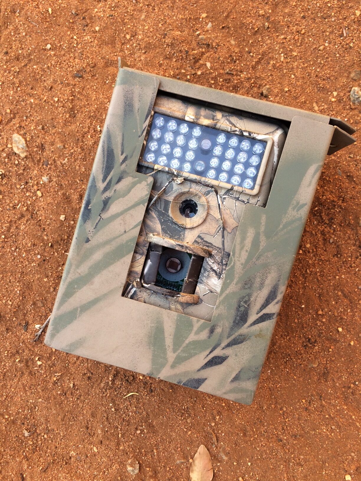 Let me explain how your strange-looking boxes met their fate. I’m sure you must have watched baby hyaenas at play? That playtime is also, as you well know, their learning time and what they are taught is to investigate every unusual object in case it is edible. So all of us do this. It also informs us of danger which is why we sniff and stare and take a bite and back off initially. This initial contact could result in a warning such as a hiss or a growl from the unknown object which will tell us to keep away. The other thing is, a light comes on when we pass the box – we don’t really like light at night, we prefer to work in darkness so naturally we will try to destroy the light. As for smell – well, yes, the two-legged smell is there all right and it smells pretty edible so naturally we try it – and then get frustrated and use it to exercise our jaws – its very challenging and some of us are developing exceptionally powerful jaw muscles – thank you for that.