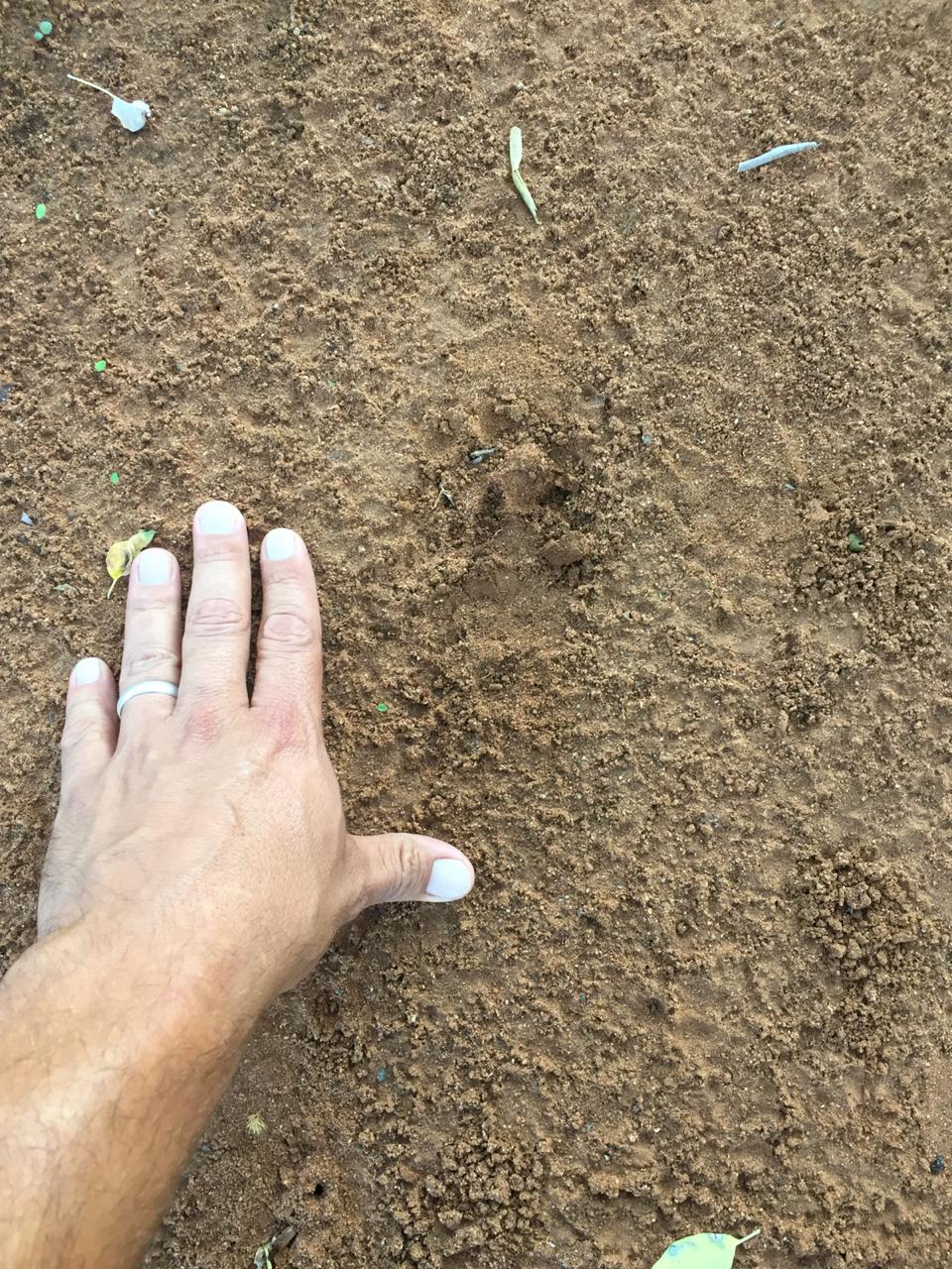 What on earth…? My immediate thought was a hyena came through our side fence that is still down. So I did a bit of CSI trying to find out what happened. I could not see a single track at the fence on the side of the house. Nor could I see much in the immediate surroundings of the crime scene. I did find an interesting track that wasn’t hyena. Could a honey badger have made off with half of Steven’s flip flop? I decided to wait until Steven was up to see if he could piece together the events of the evening.