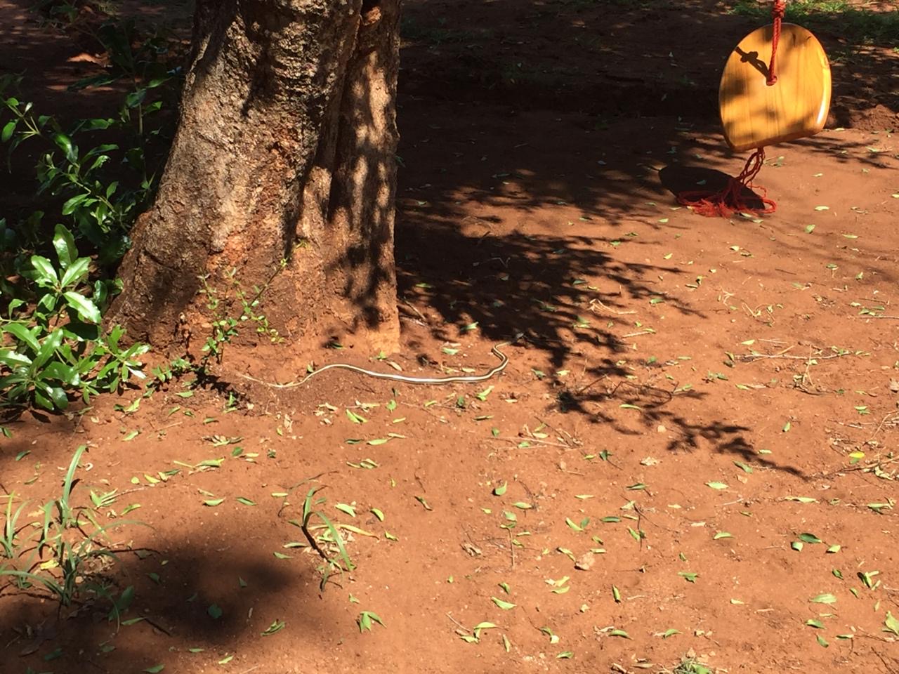 While Jack was searching for Easter eggs by the garage, Alex came running towards us from the Monkey Orange! “Papa, kom! Slang!! – Come, daddy, there is a snake!” Now when our child yells something like that, we immediately jump up to investigate. There is no way of knowing if the snake in question is harmless, or indeed one of the venomous snakes we get in our garden from time to time.